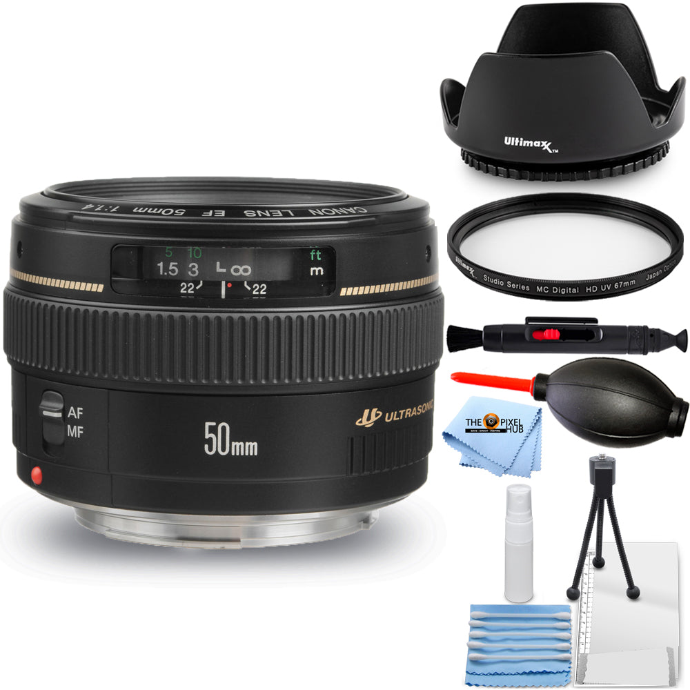 Canon EF 50mm f/1.4 USM Lens 2515A003 + UV Filter + Tulip Hood Lens Bundle