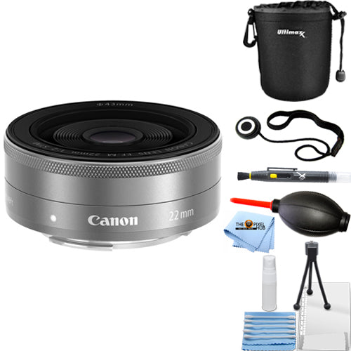 Canon EF-M 22mm f/2 STM Lens (Silver) 9808B002 - Essential UV Filter Bundle