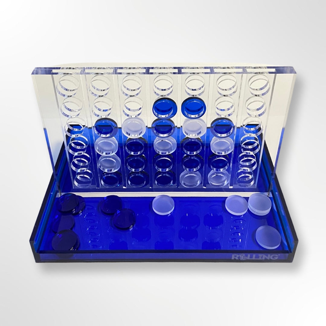 Lucite Acrylic Four in A Row Game - Premium Connect 4 Board and Chips (Clear Blue)