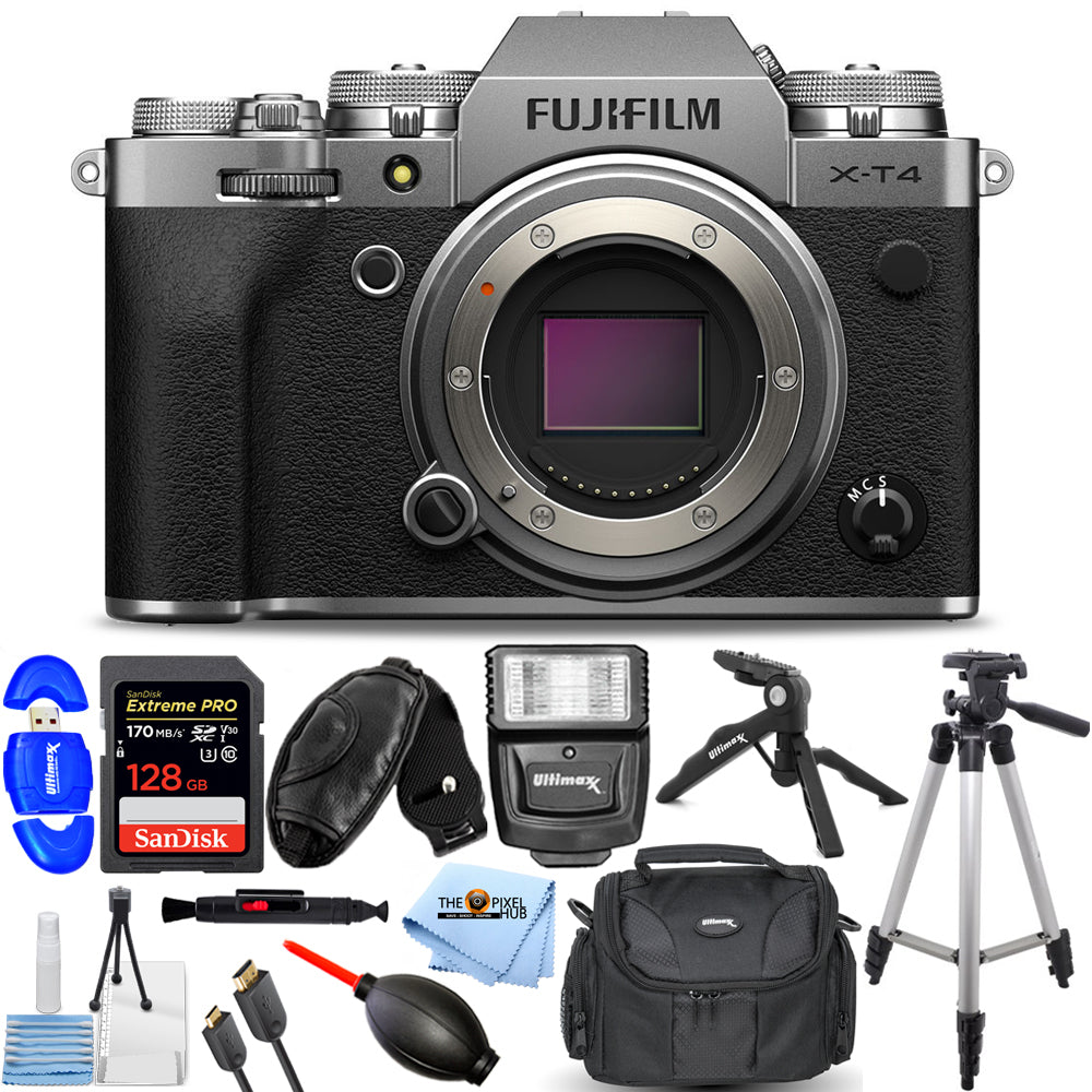 FUJIFILM X-T4 Mirrorless Camera (Silver) 16652867 - 12PC Accessory Bundle