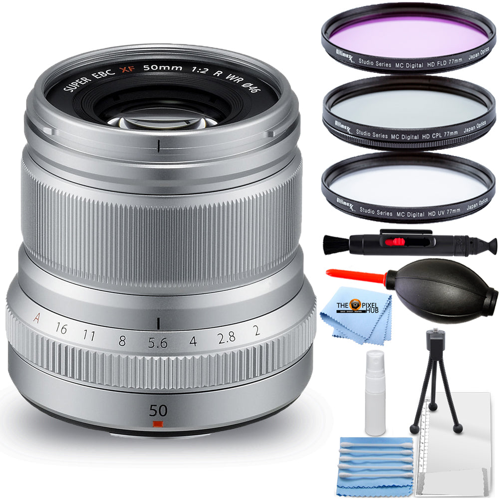 FUJIFILM XF 50mm f/2 R WR Lens (Silver) 16536623 - 7PC Accessory Bundle