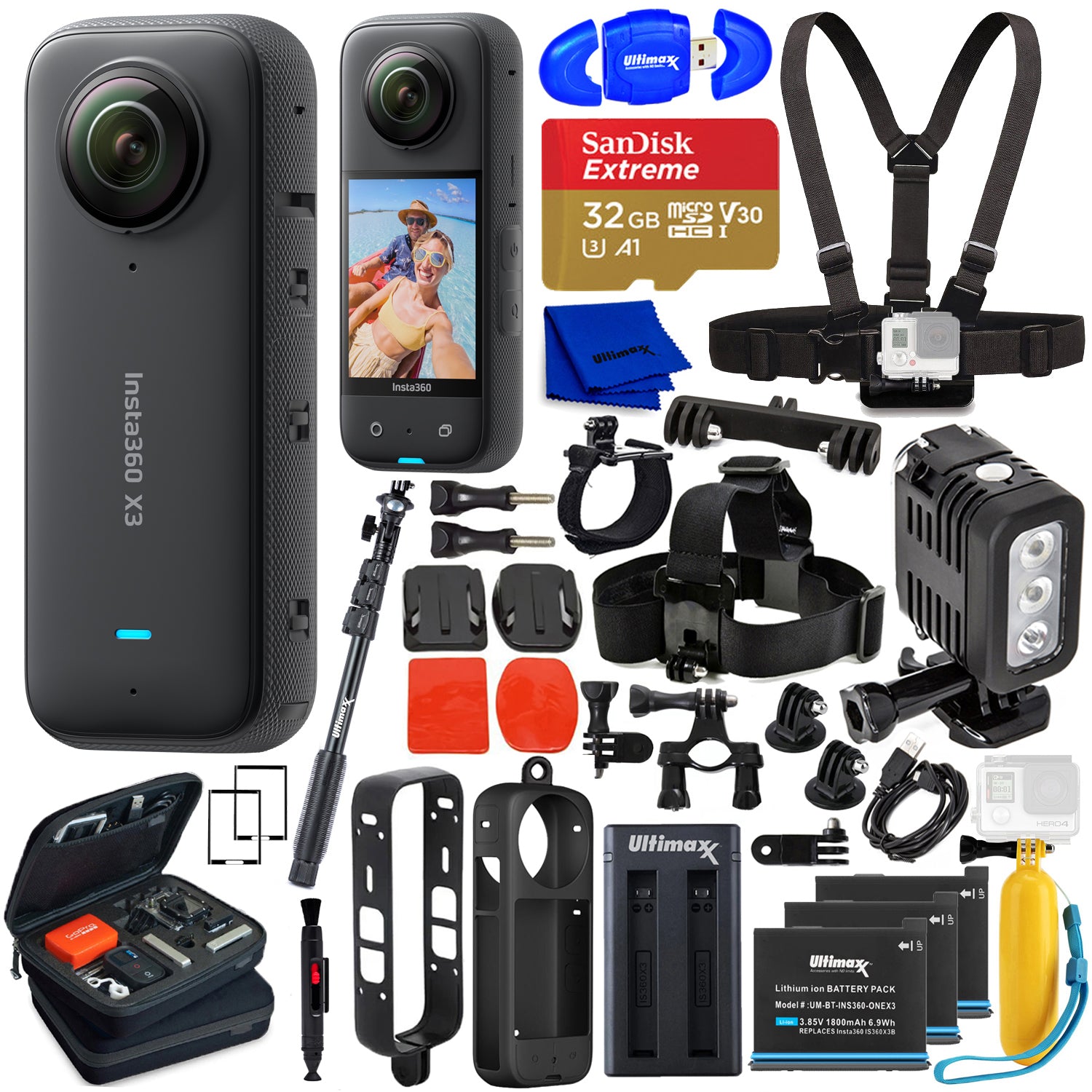 Insta360 X3 5.7K 360° Waterproof Touch Screen Action Camera - 25PC 32GB Bundle