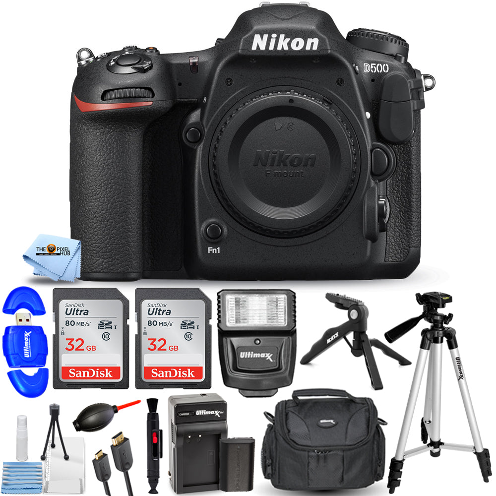 Nikon D500 DSLR Camera (Body Only) + Extra Battery + 64GB + Flash Bundle