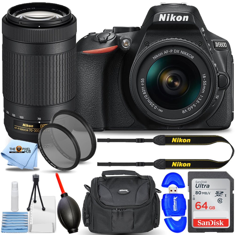Nikon D5600 DSLR Camera with 18-55mm and 70-300mm VR - Essential 64GB Bundle