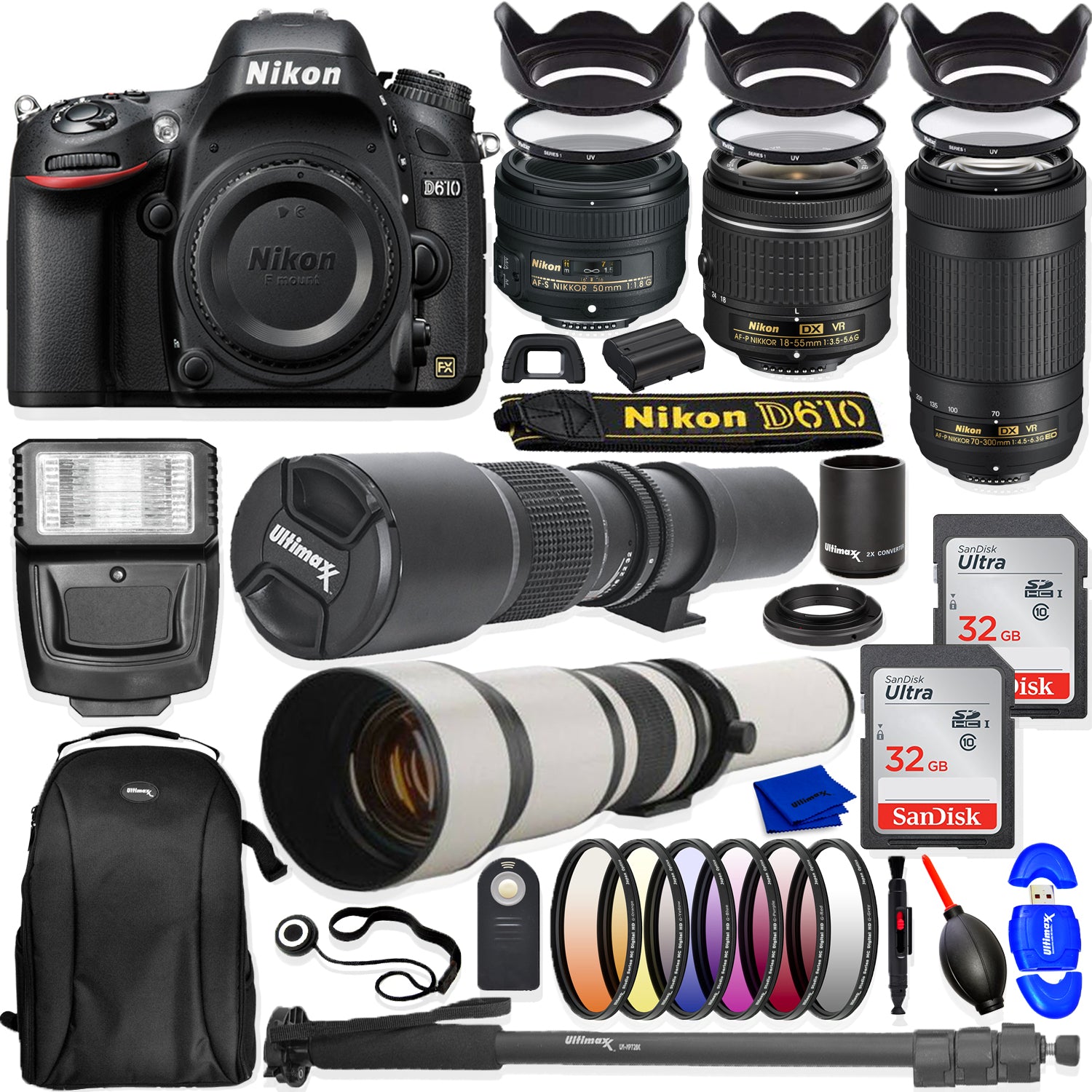 Nikon D610 Camera with 18-55mm + 70-300mm + 50mm STM Lenses - 30PC Access Bundle
