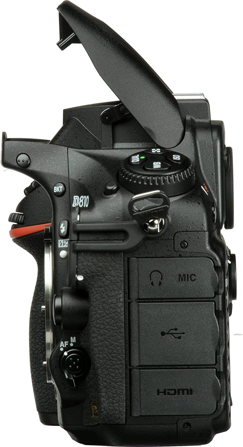 The D810 utilizes dual media slots for both Compact Flash and SD cards, and it provides a built-in flash with i-TTL metering as well as a hot shoe mount. A larger grip enables comfortable control for extended shooting, and a secondary "i" button has been added to back panel for faster access to important settings.