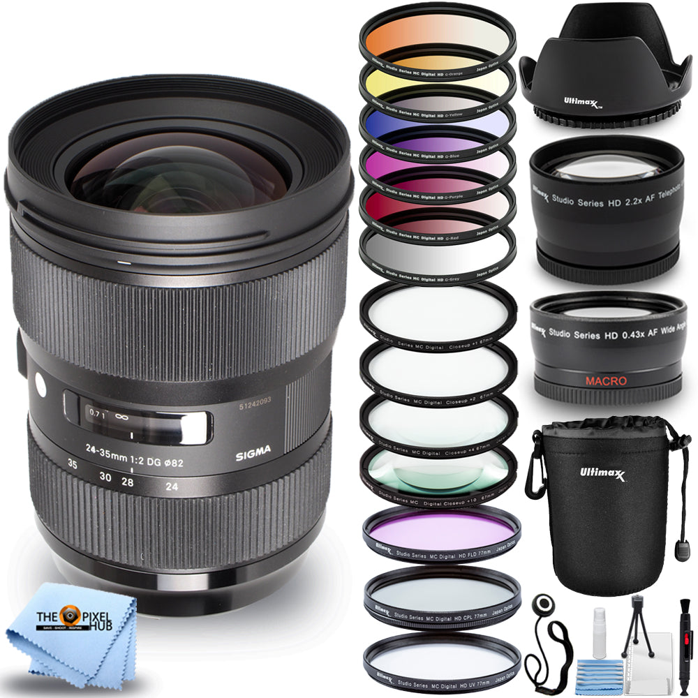 Sigma 24-35mm f/2 DG HSM Art Lens for Nikon F + Filter Kits + Lens Pouch Bundle