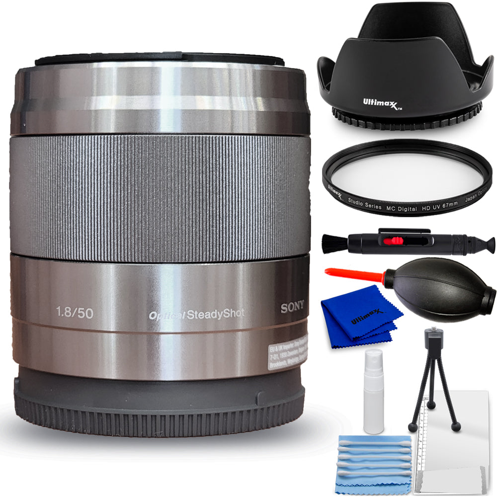 Sony E 50mm f/1.8 OSS Lens (Silver) SEL50F18 - 7PC Accessory Bundle