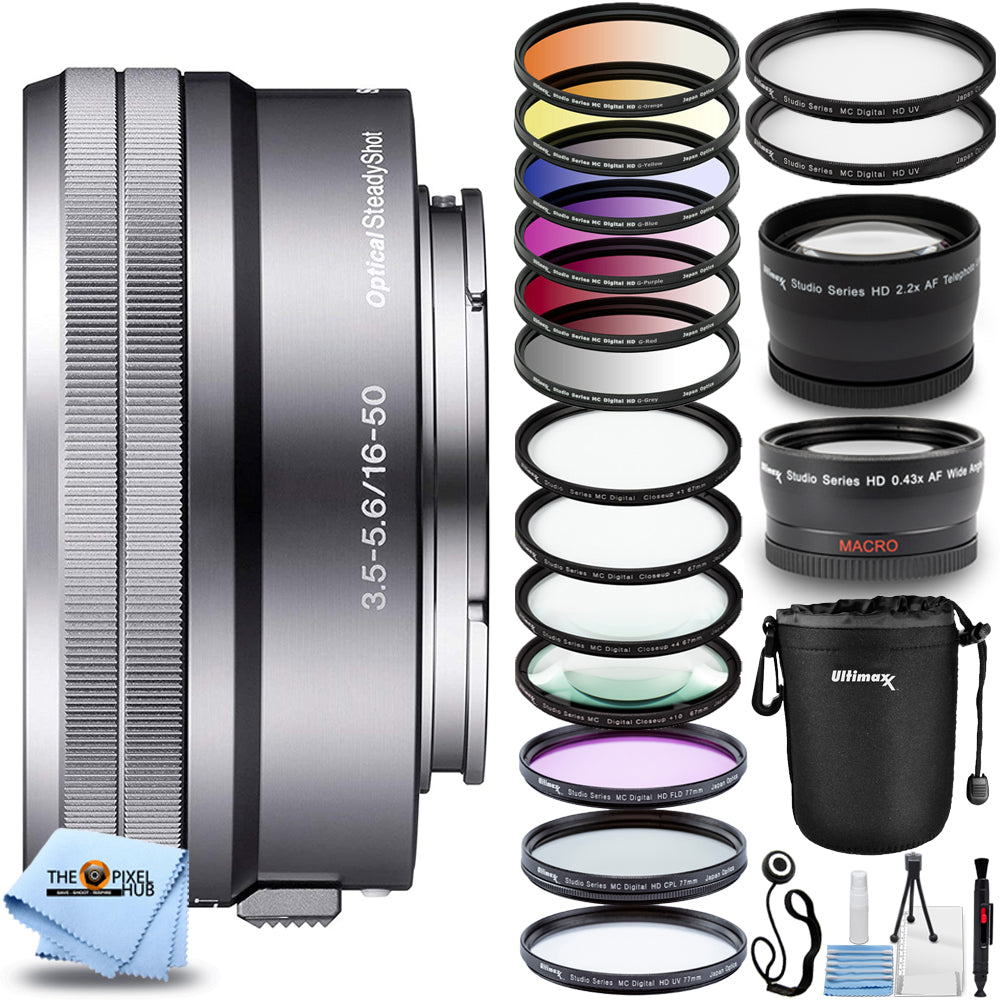 Sony E PZ 16-50mm f/3.5-5.6 OSS Lens (Silver) - 22PC Accessory Bundle
