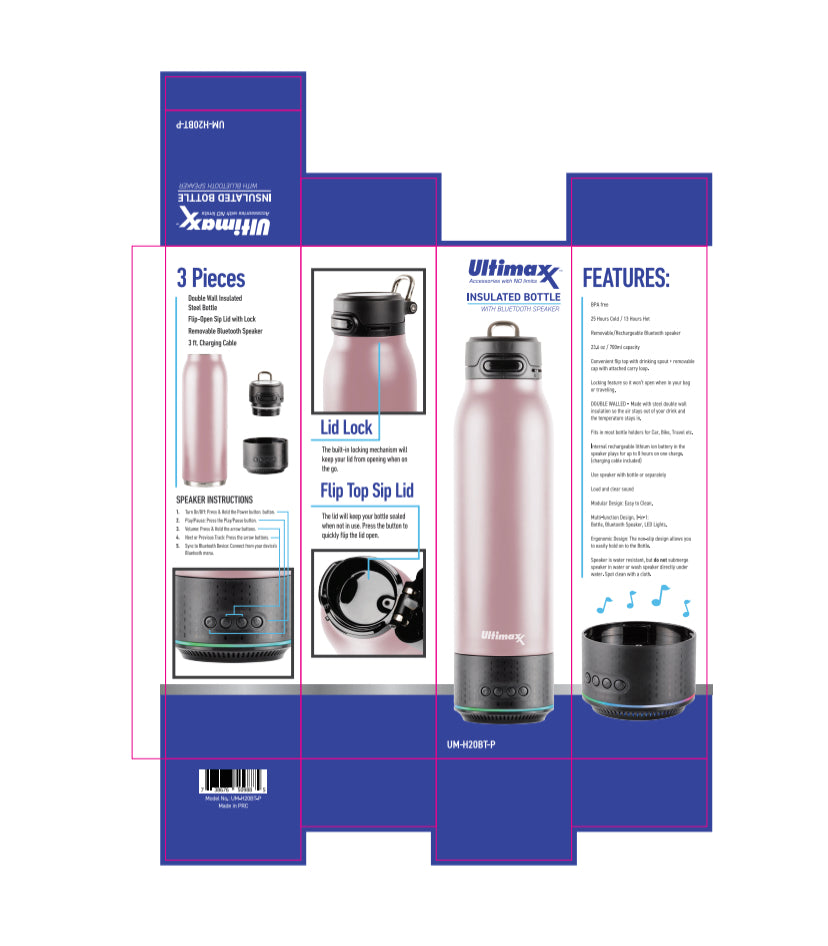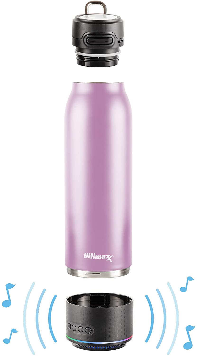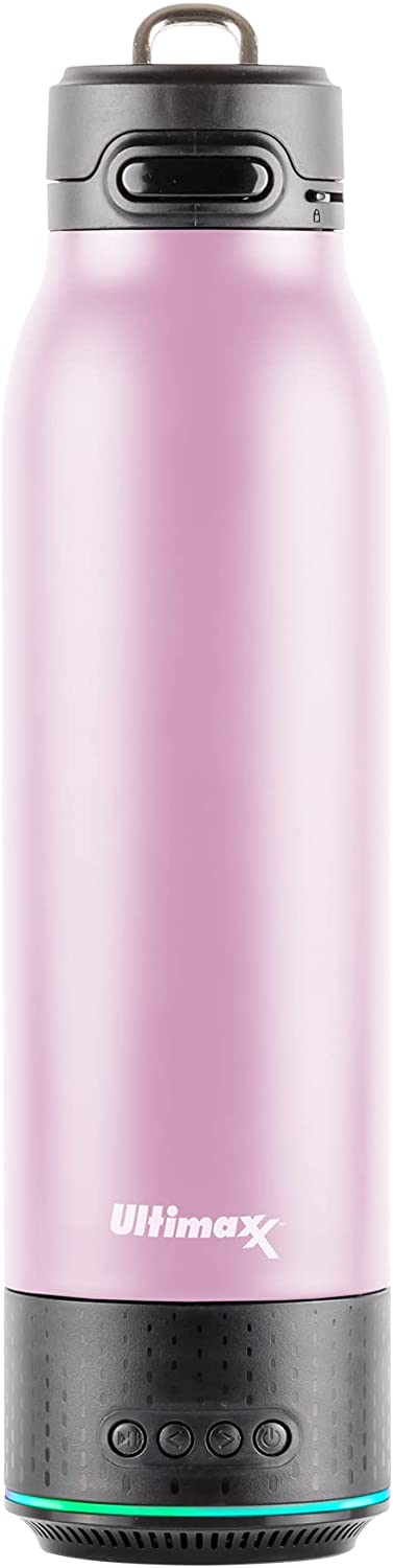 Ultimaxx Vacuum Insulated Premium Water Bottle with Rechargeable Bluetooth Speaker - Steel Double Wall Design + Lights, Convenient Drinking Spout, Lid Lock, and Carry Handle (700ml/23.6 oz)